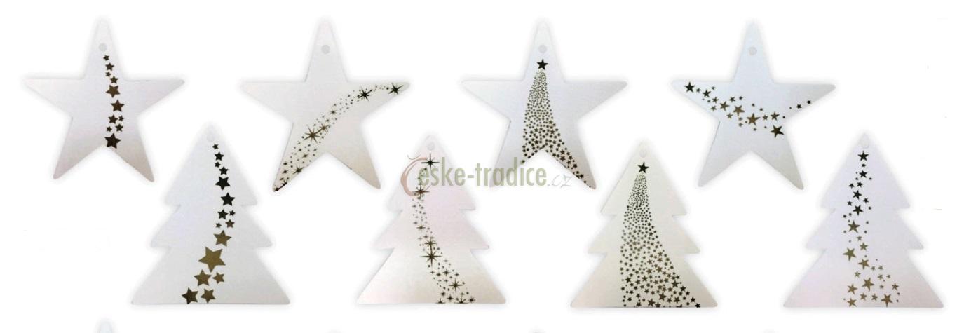 Mix 8 ks vánočních jmenovek se zimními motivy hvězd a stromků